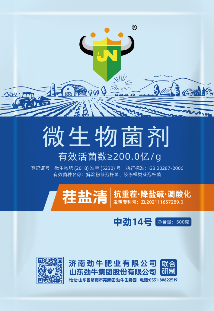 本品由勁牛集團·濟南勁牛肥業(yè)有限公司,針對作物重茬連作、土壤鹽堿酸化、土傳病害等問題聯(lián)合研制,內(nèi)含解淀粉芽孢桿菌、膠凍樣類芽孢桿菌、假格里尼翁蒼白桿菌、微白黃鏈霉菌等有益微生物菌群,施用后快速繁殖,在作物根際形成保護屏障,以菌克菌防重茬,活化土壤解磷鉀,改土調(diào)酸降鹽堿。